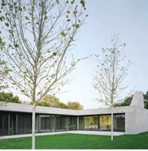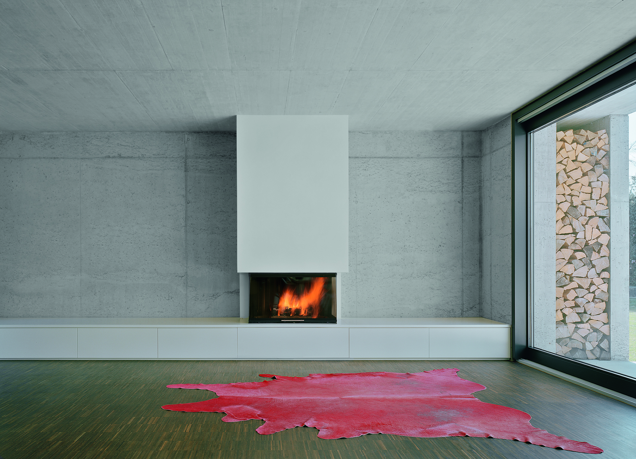 Vor Kurzem entstand in Haigerloch ein L-förmiger Winkelbungalow, der mit seiner gedrungenen Gestalt, der auffälligen Sichtbetonoptik und der markanten polygonalen Kaminhaube wie fest in der Landschaft verankert erscheint. Dieser Eindruck ist das gewollte Resultat der baulich-architektonischen Konzeption des Objekts, die von berger röcker architekten in Stuttgart erstellt wurde. "Es sollte ein monolithischer, homogener und einfacher Bau entstehen, der wie eine archaische Höhle Schutz und Massivität ausstrahlt", erklärt Peter Röcker von berger röcker architekten. "Die Ausführung als monolithischer Block sorgt für ein klares und eindeutiges Design, während die durchgängige Sichtbetonoptik dem Objekt eine charakterstarke, lebendige Fassade verleiht und im Innern die nötige Klarheit schafft."