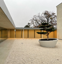 An der Simmeringer Hauptstraße im südöstlichen Teil von Wien befindet sich die Feuerhalle Simmering. Sie wurde 1922 erbaut und stellt das erste in Österreich errichtete Krematorium dar. Kennzeichnend für den von Clemens Holzmeister konzipierten Bau ist der klare expressionistische Stil, in den sich aber auch orientalische Einflüsse mischen. Um der steigenden Nachfrage nach Feuerbestattungen gerecht werden zu können, lobten die Friedhöfe Wien GmbH 2019 einen europaweiten Architektenwettbewerb zur Erweiterung der Anlage aus. Durchsetzen konnten sich die Architekten vom Grazer Büro projektCC zt gmbh mit einem zweistöckigen Bau an der Nordseite des Bestandsensembles. „Das Gebäude nimmt eine eigenständige Position in der umgebenden Parklandschaft ein und greift das für die Gesamtanlage charakteristische Prinzip der Achsialsymmetrie auf“, erklären die Architekten Harald Kloiber und Christian Tabernig. „Die kubische Gliederung als raumbildendes Gestaltungsprinzip wird fortgeführt und neu interpretiert. Differenzierte Vor- und Rücksprünge sowie die ausgewogene Höhenstaffelung gliedern das Gebäude und beziehen sich auf den Bestand.“