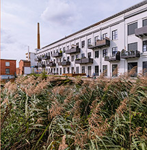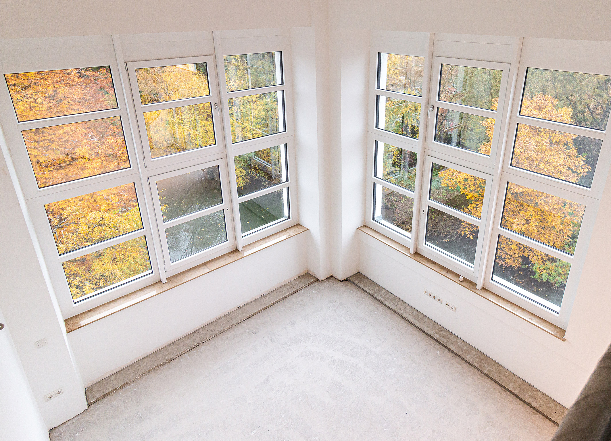 Im Anschluss ging es an den Bau der Wohneinheiten auf den drei verschiedenen, bis zu 5,40 Meter hohen Fabriketagen. Geschaffen wurden hier letztlich 115 Wohnungen mit Flächen zwischen 25 und über 200 Quadratmetern. Das Spektrum reicht dabei von der stilvollen Single- und Businesswohnung über die hochmoderne Galeriewohnung bis hin zur familienfreundlichen Mehrzimmerwohnung mit Blick ins Grüne.