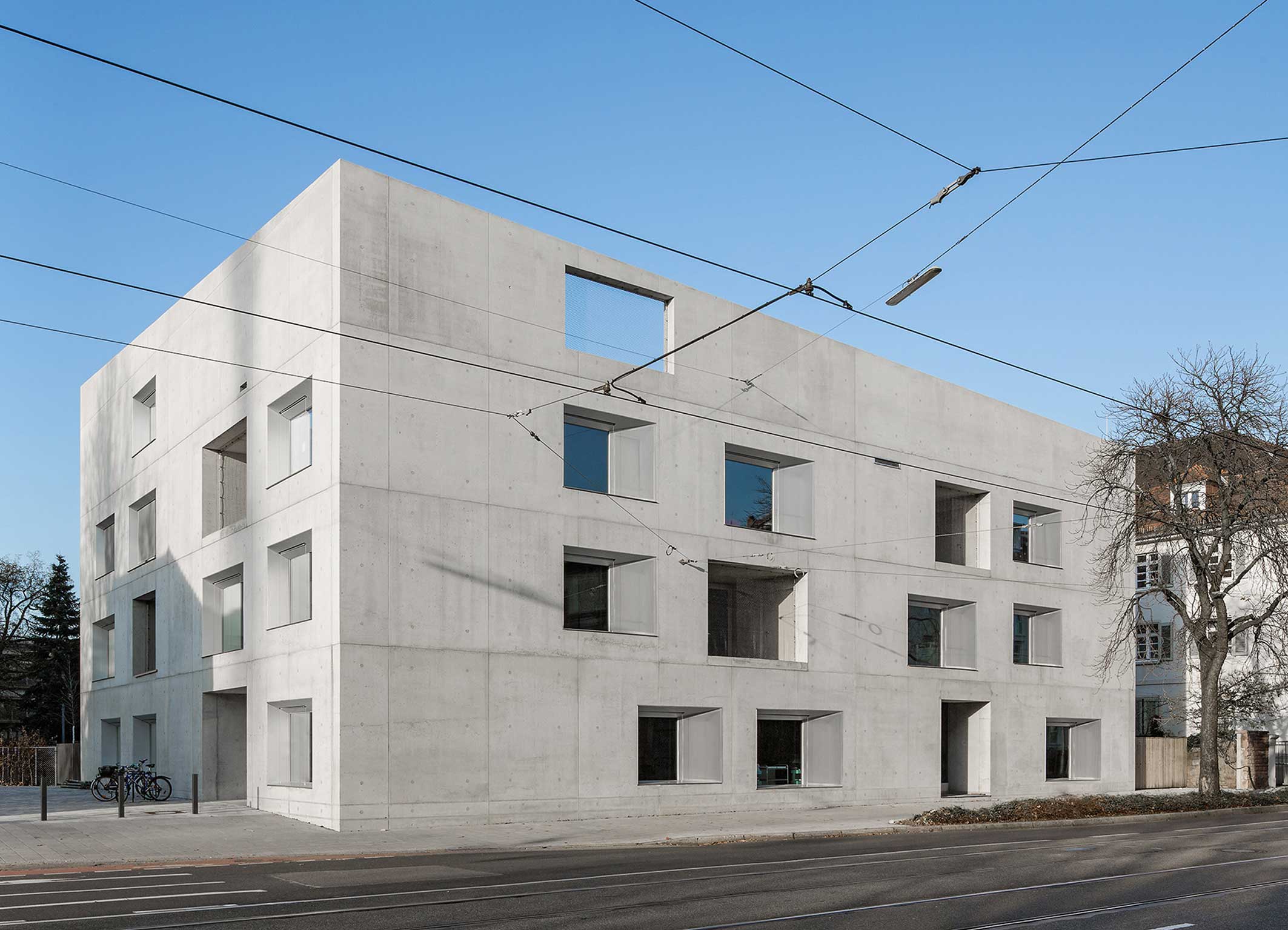Ein schlichter Quader in dezentem Farbton, der gleichzeitig Massivität und Kompaktheit ausstrahlt – das war einer der Grundgedanken des Berliner Architekten José Gutiérrez Marquez für den Bau der Kindertagesstätte "KinderUniversum" in Karlsruhe. Genauso wichtig war es aber auch, den Kindern mit dem Bau jede Menge Freiräume zum Spielen, Lernen und Entdecken zur Verfügung zu stellen. Umgesetzt wurde der Neubau mit seinen 115 Kinderbetreuungsplätzen als viergeschossiger Gebäudekubus in monolithischer Ausbildung und heller Sichtbetonoptik.