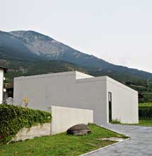 Mitten in den Walliser Alpen liegt der kleine Ort Salgesch, rund 20 Kilometer nordöstlich von Sion. Zum Bild der im 13. Jahrhundert gegründeten Ortschaft gehört auch der kleine Friedhof mit seiner historischen Kirche. Direkt daneben entstand vor Kurzem eine neue Friedhofskapelle, die als monolithisches Bauwerk in Sichtbeton-Optik einen ganz besonderen Akzent im ansonsten historischen Ambiente setzt. Entworfen wurde das kubistisch anmutende, in sich geschlossene Objekt von Architekt Norbert Truffer von der Cometti Truffer Architekten AG in Luzern unter der Bauherrschaft der Stiftung Friedhofskapelle und Pfarrei Salgesch.