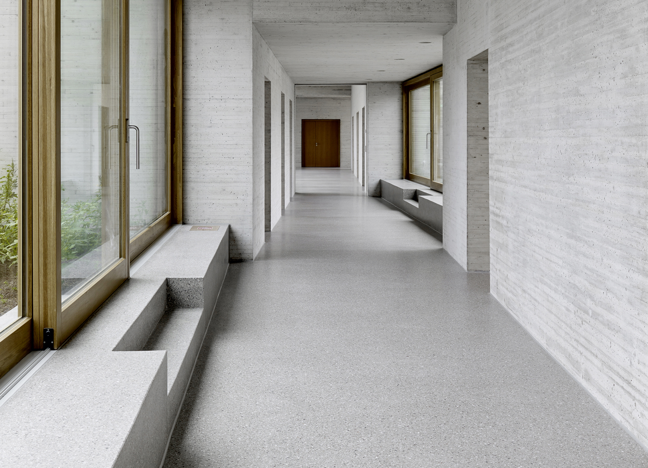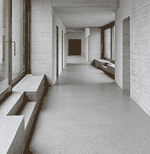 Die unbehandelten Sichtbetonflächen unterstreichen den -puristischen Charakter des Predigerseminars.