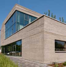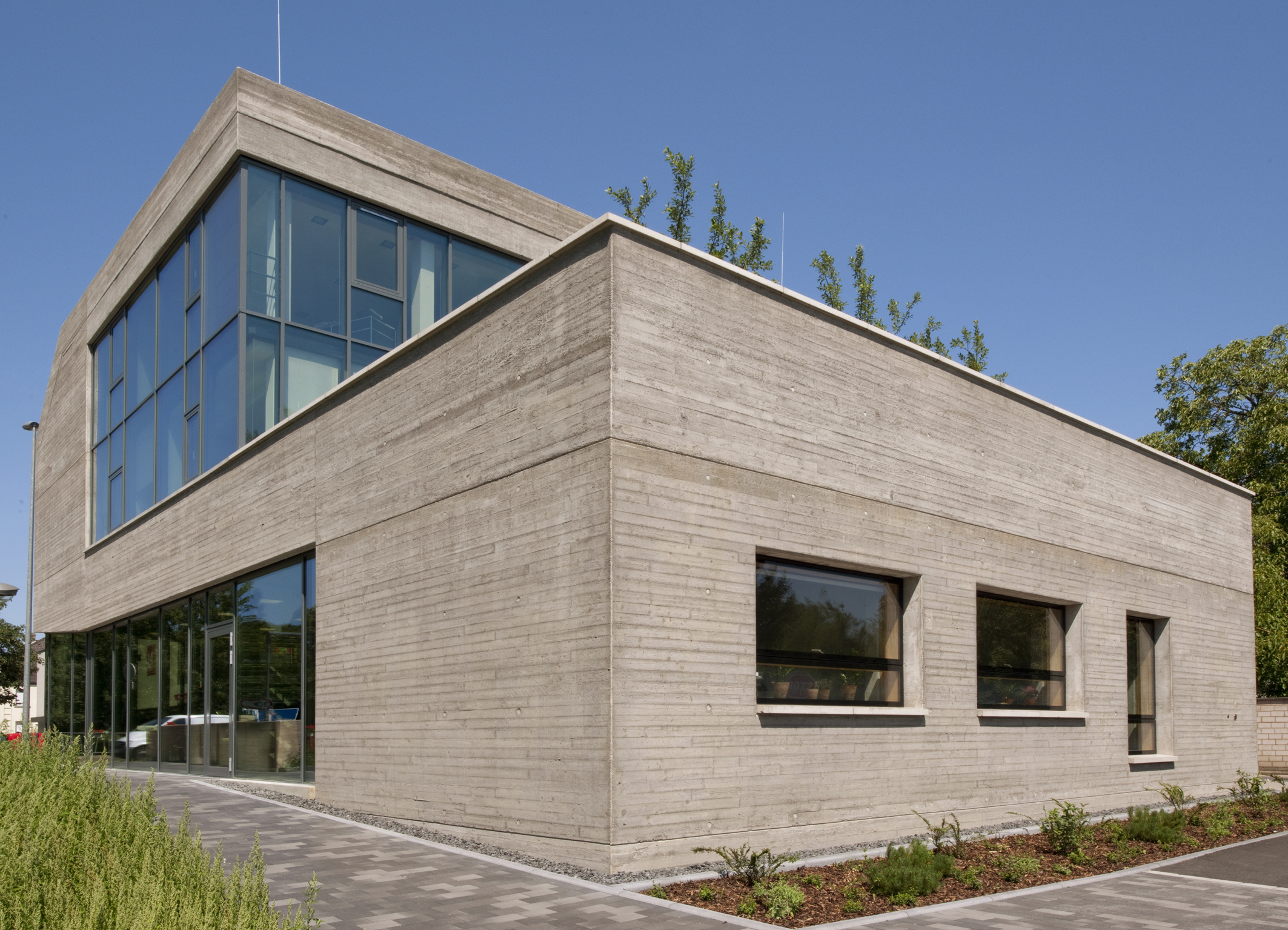 Seit Kurzem steht in Erftstadt bei Köln ein modernes, dreigeschossiges Objekt in Sichtbetonoptik, das mit seinen Glas- und Betonflächen Ruhe und Klarheit ausstrahlt, gleichzeitig einen neuen, eindrucksvollen Akzent im Stadtbild setzt. Vorausgegangen war ein Architekturwettbewerb, zu dessen Sieger die Jury das Kölner Architektenbüro raumwerk.architekten kürte. "Wir wollten einen monolithisch wirkenden, skulpturalen Bau schaffen, der an die Schlichtheit des Bonner Tores anknüpft und auch im Kontext zum vorhandenen Grün- und Wohnumfeld steht", erklärt Architekt Marc Hübert. "Mit seinen Beton- und Glasflächen schafft das Objekt einen schlichten, zugleich optisch markanten Ruhepunkt, der auch einen repräsentativen Charakter für die Stadt bildet."