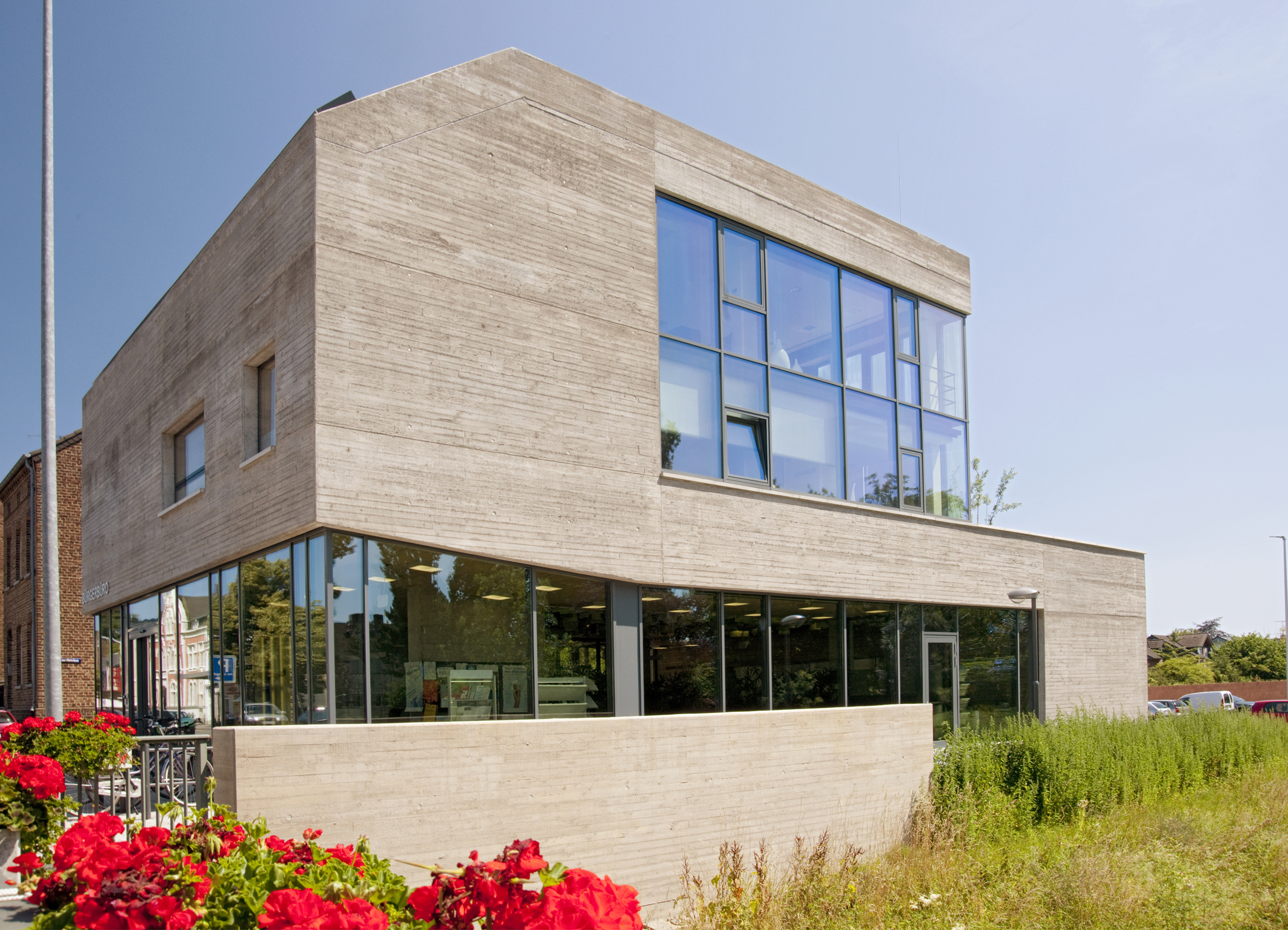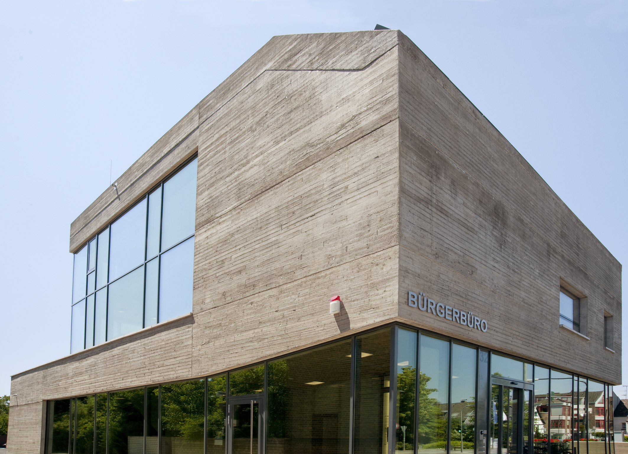 Mit seinen Glas- und Betonflächen strahlt das Erftstädter Bürgerbüro Ruhe und Klarheit aus und setzt gleichzeitig einen markanten Akzent im Stadtbild.
