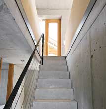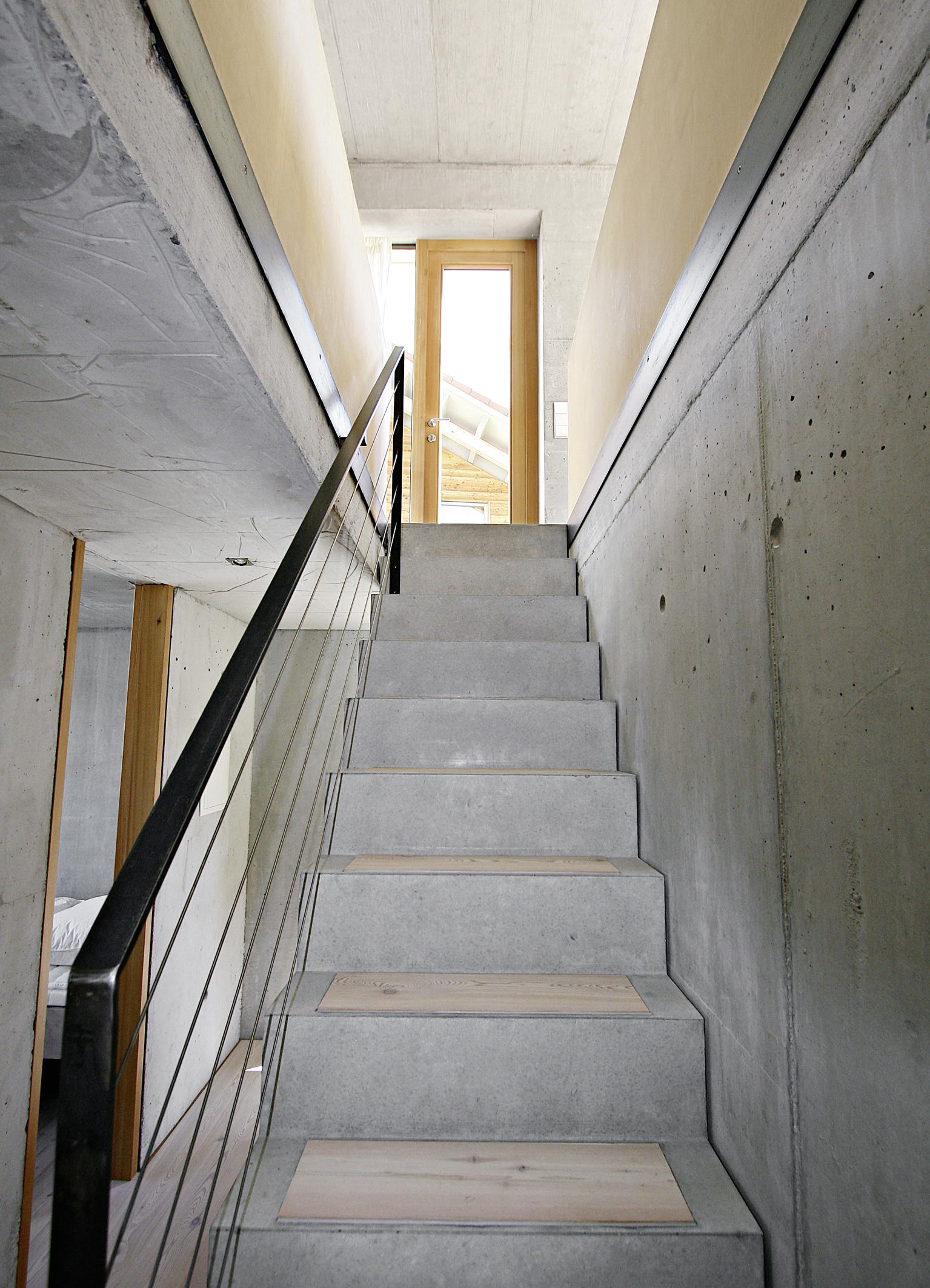 Lichtdurchfluteter Raum: viel Licht auf allen Wohnebenen, sogar in der Ferienwohnung im Souterrain, dazu viele Ausblicke in die Natur. Das lässt auch den monolithischen, 50 Zentimeter dicken Beton leicht erscheinen.