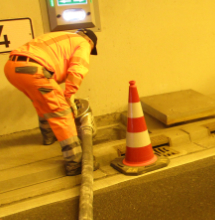 Nach der Installation aller erforderlichen Kabel und Leitungen erfolgte dann direkt die Neuverfüllung der Kabelzugschächte mit insgesamt etwa 32 Kubikmetern Liapor-Blähton 4/8 ungebunden. Hergestellt und geliefert wurde das Material vom Liapor-Werk Pautzfeld, und der Eintrag erfolgte innerhalb eines Tages mittels Silo-Lkw und Einblasschlauch. Die Verfüllarbeiten führte das Personal der Straßenmeisterei Rottenburg in Dußlingen aus. Den oberen Abschluss der Schüttung bilden Deckelplatten aus Beton. Damit sind die Kabelschächte im Dußlinger B 27-Tunnel, der Ende März 2022 wieder für den Verkehr freigegeben wurde, dauerhaft und sicher verfüllt. Es ist eine bewährte und äußerst praxistaugliche Lösung, die beispielsweise auch im Scheibengipfeltunnel in Reutlingen oder im kürzlich eröffneten Tunnel der Ortsumfahrung Oberau bei Garmisch-Partenkirchen für Schutz und Sicherheit sorgt.