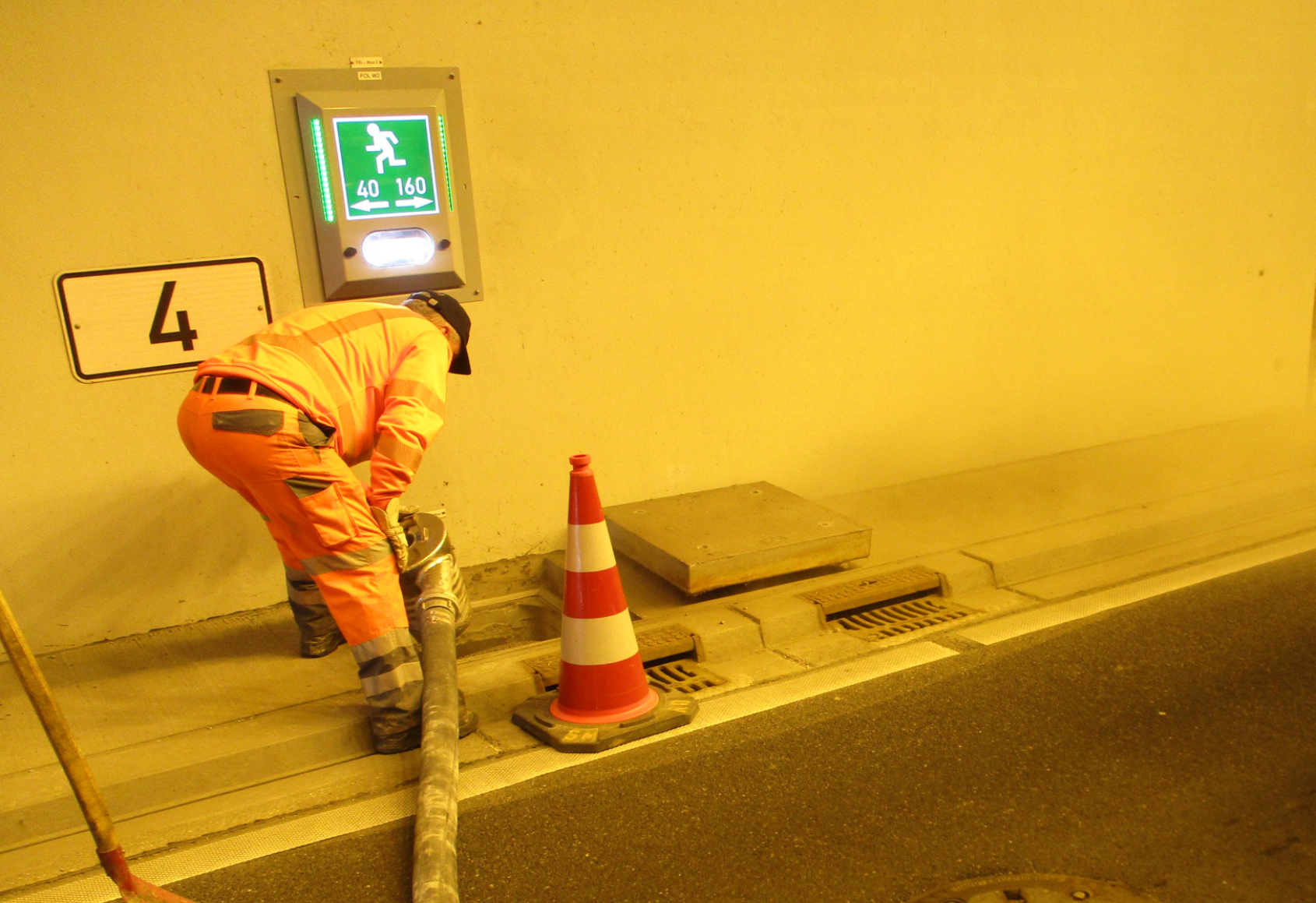 Kurze Zeit später begannen in den beiden Tunnelröhren die Instandsetzungsarbeiten, die vom Regierungspräsidium Tübingen geplant, beauftragt und umgesetzt wurden. Sie umfassten unter anderem den Austausch der Notrufnischen und der Türen zum Betriebsgebäude sowie die Neuinstallation der zugehörigen Betriebsanlagen inklusive Überwachungstechnik und Fluchtwegbeleuchtung. Genutzt wurden dafür die insgesamt 70 Kabelzugschächte, die durch die Überflutung nicht beschädigt wurden. Die Schächte waren zur Sicherstellung des Brandschutzes und zum Schutz der Kabel schon zuvor mit losem Liapor-Blähtongranulat ausgefacht – und mit diesem Baustoff wurden sie nun auch wieder verfüllt.