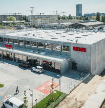 Mit dem neuen REWE-Supermarkt in Berlin-Friedrichshain entstand deutschlandweit der erste Gewerbebau aus Liapor-Infraleichtbeton. Der innovative Baustoff ist dämmend und tragend zugleich, weist einen geringen CO2-Fußabdruck auf und trägt zur besonderen Nachhaltigkeit des Gebäudes bei.
