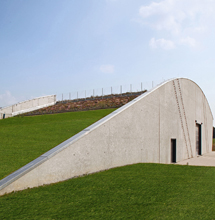 Mit ihrer elliptischen Gebäudeform, den markanten Seitenscheiben in Sichtbetonoptik und den darin integrierten Traktorspuren bildet die neue Werkstatt- und Maschinenhalle das Highlight des neuen "AgroHort"-Ensembles der Universität Bonn. Die Errichtung aus Liapor-Leichtbeton ermöglichte die massive Bauweise ohne zusätzliche Wärmedämmung – für pure, unverfälschte Betonästhetik.