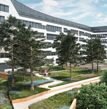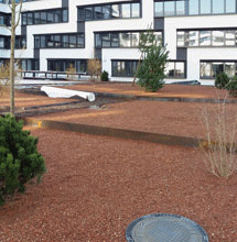 Knapp 7.000 Kubikmeter Liapor Ground bilden die Basis für die vier intensiv begrünten Innenhöfe im neuen Wiener Austria Campus. Das Blähton-Granulat mit 1-16 mm großen, rund und gebrochen gemischten Blähtonkugeln überzeugte durch geringes Gewicht mit einer Trockenschüttdichte von lediglich 500 kg/m³. Liapor Ground, das in Schichtdicken zwischen vier Zentimetern und zwei Meterneingetragen wurde, stellt die ideale Basis für die intensive Bepflanzung der Innenhöfe dar. Weitere Pluspunkte sind neben der hohen Verfügbarkeit auch der effiziente Eintrag: So kann das Granulat direkt vom Silozug per Schlauchleitung bis zu 150 Meter weit an seinen Einsatzort verblasen werden – ganz ohne Kräne, Förderanlagen oder Materiallagerplätze.