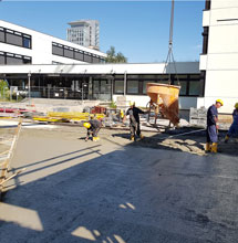 Bei der Erweiterung der Grundschule in Haar galt es, auf den Freiflächen ein besonders leichtes und dennoch hochfestes -Gefälle auszubilden. Die Lösung boten rund 200 Kubikmeter eines Liapor-Gefällebetons.