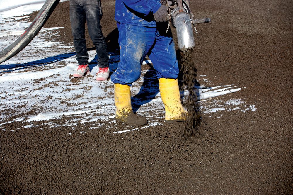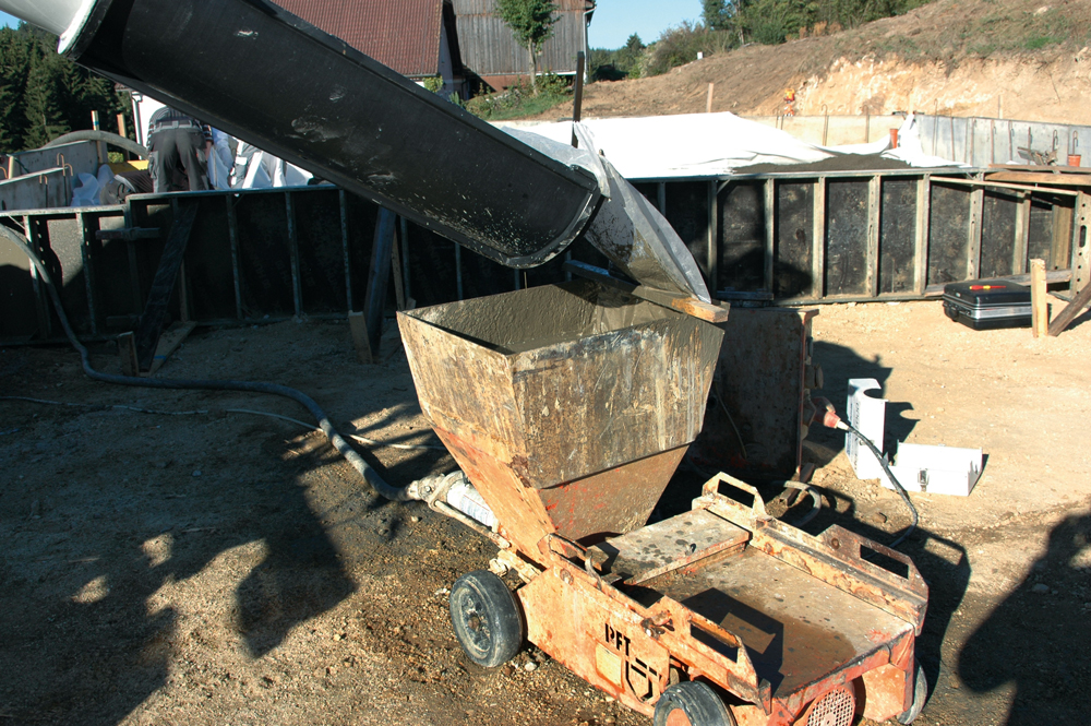 The bulk material is delivered to the building site by hopper truck or dumper truck and is mixed on-site. It can also be delivered ready-mixed directly in a mixing lorry. The pumpable material can be applied using a mixing head method or with a screed pump. The shuttering can also be used for the base plate, which can be concreted the very next day. Alongside the foundation or base plate insulation, Liapor Fundatherm is suitable for use anywhere where the building is in contact with the ground, for swimming pool backfills, cavity fills or below a screed.