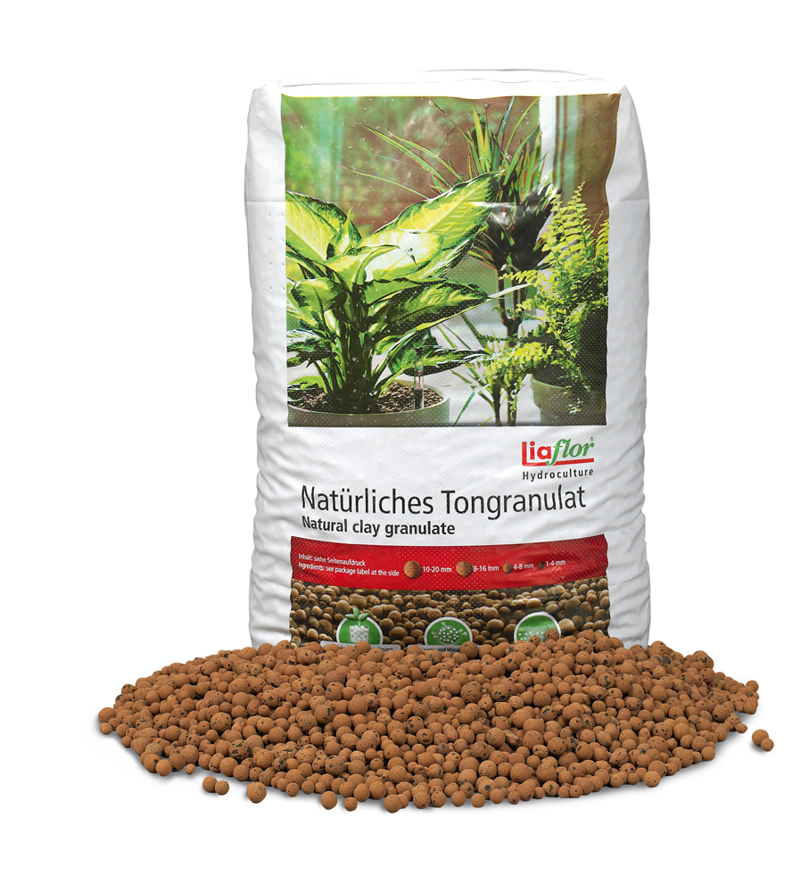 Liaflor natural clay granules promote healthy plant growth and are versatile in use. Thus, for example, Liaflor provides ideal drainage for indoor and terrace plants. Liaflor absorbs excess moisture, stores it and releases it again when the plants need it. The clay granules also guarantee adequate aeration and thus prevent waterlogging and mould. At the same time, Liaflor minimizes the risk of the plants drying out and they can be left for an extended period without being watered. Due to its high water storage capacity, Liaflor is also the ideal substrate for easy-to-maintain hydroponic projects. Liaflor is available in a range of grain sizes for different types of application. However, it is possible to use all the grain sizes for all the different applications. What is more, the different grain sizes can be mixed together. We have developed the following recommendations for first-time users of the material: