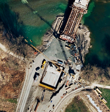 The substrate consists of a basin filled with a silt-sand and clay-silt deposit of approximately 50 metres in depth and has a correspondingly restricted load-bearing capacity. The requirements in terms of structural stability were therefore very high during the construction of the bridge, in particular at the areas between the bridge abutment and the embankment. That is why approximately 1,000 cubic metres of Liapor expanded clay fill with a grain size of 8-16 millimetres and a bulk density of some 300 kg/m³ were used on each side. This reduced the weight on either side of the bridge by approximately 1,300 tonnes.
